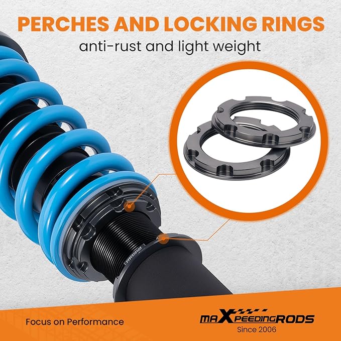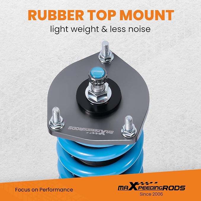 - 【Adjustable Height】 Thread-type ride height adjustment for 0-45 mm(does not keep the original ride height), allowing you to have a more aggressive stance. This design helps eliminate turning noise and also improves steering feel and response