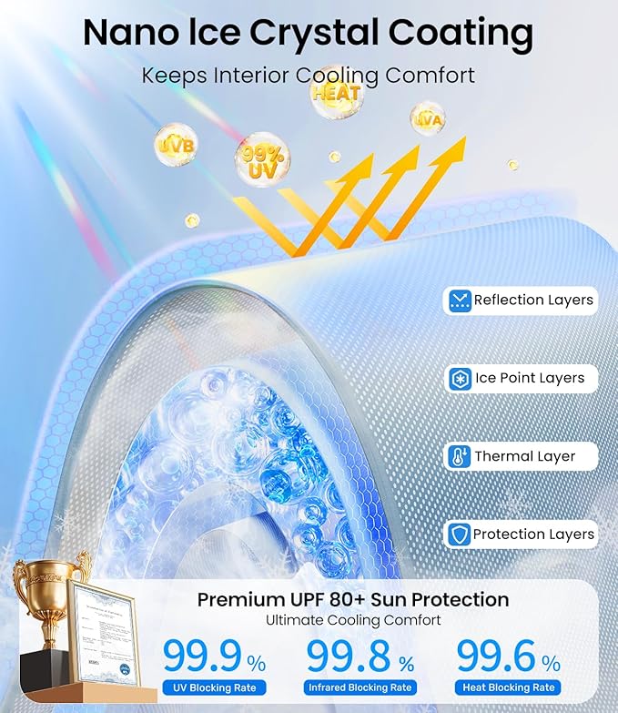 - [Super Stability - No Sagging] The military-grade alloy frame ensures the sunshade stays flat and stable over time. Suction cups are designed to keep the shade from sliding. The lightweight Nano Ice Crystal material reduces weight minimizing the risk of sagging caused by gravity, and ensuring long-lasting durability