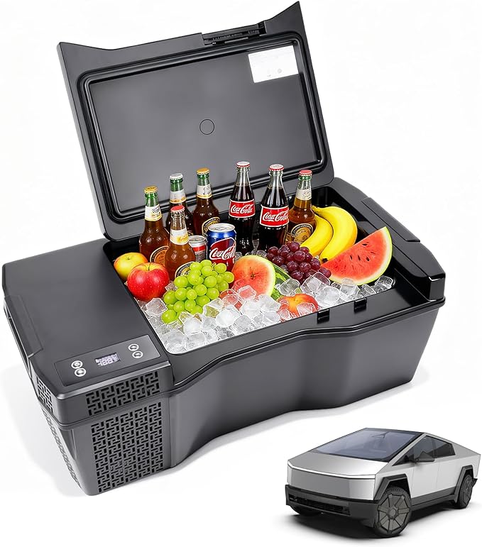 Built-in Car Refrigerator Compatible with Tesla Cybertruck, 26.4Qt/25L Custom-fit Trunk Freezer, APP Control, 12/24V Low-Noise Compressor Cooler, Hidden Electric Fridge for Camping & Road Trips